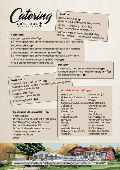Vi erbjuder catering med omsorgsfullt valda rätter på utvalda råvaror.